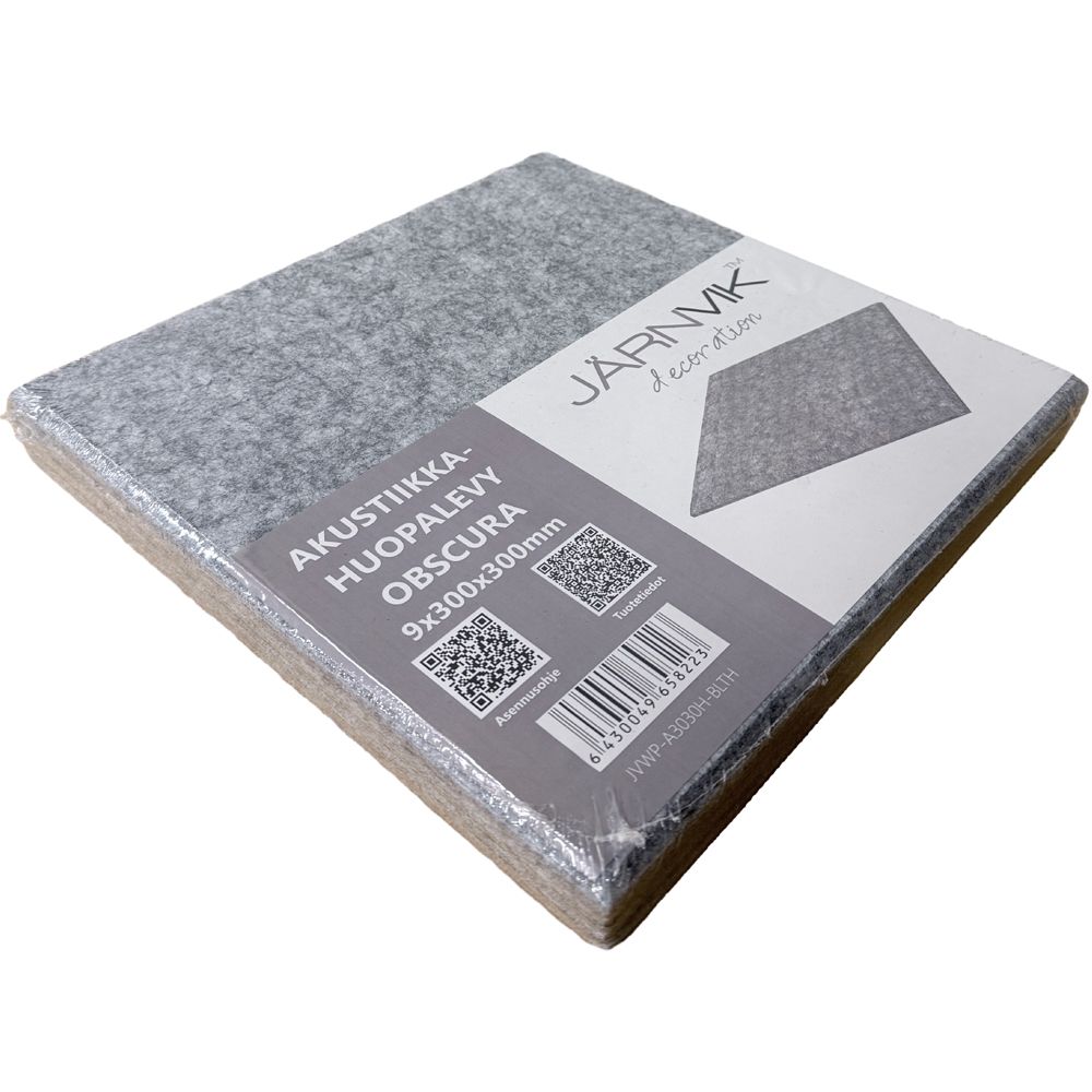 - Tuotepolku Etusivu SisustaminenSeinäpaneelit Akustiikkahuopalevy 9x300x300mm Obscura t.harmaa 4kpl
