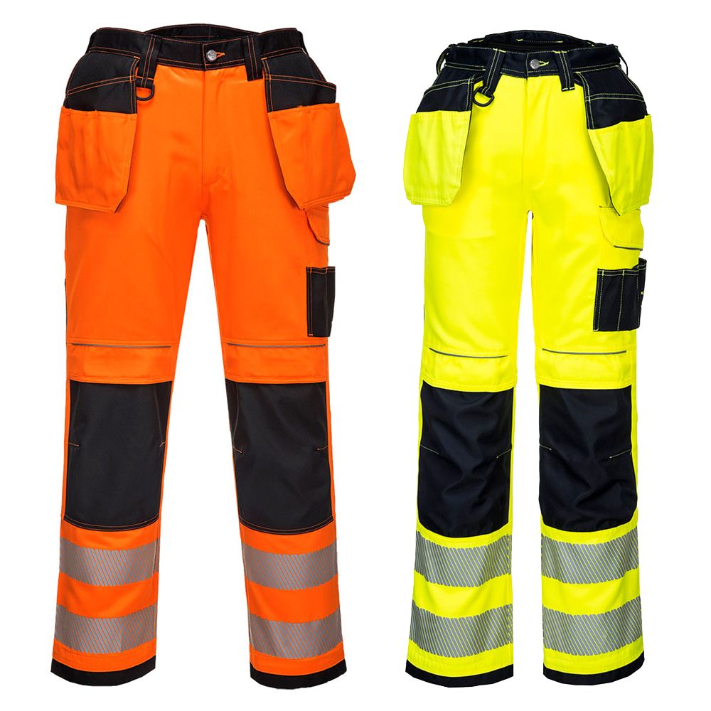 Nämä HiVis-työhousut on suunniteltu kovaan ammattilaiskäyttöön, jossa vaaditaan näkyvyyttä, mukavuutta ja kestävyyttä. Riipputaskut, useat työkalutaskut ja ylhäältä avattavat polvisuojataskut takaavat toimivuuden, ja mukana tulevat polvisuojat lisäävät käytännöllisyyttä. Oxford-vahvikkeet, kolminkertainen tikkaus ja Texpel-käsittely varmistavat erinomaisen kulutuskestävyyden. Joustavat heijastenauhat parantavat näkyvyyttä kaikissa olosuhteissa.