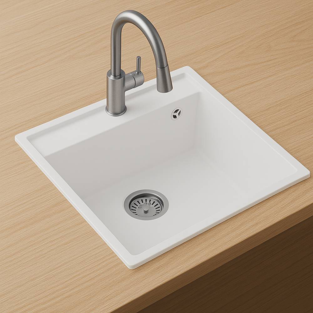 Tyylikäs ja kestävä 1-altainen komposiittiallas, joka valmistettu 80 % värillisestä kvartsista ja 20 % sidosaineista. Se kestää hyvin kuumuutta ja kulutusta, ja sopii ylä-, ala- tai huulloskiinnitykseen. Mukana putkisto.