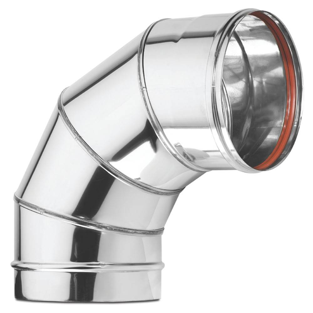 Savuputken kulma, jonka materiaali 0,6mm AISI 304 -teräs. CE -merkitty. Kulma 90 -astetta, halkaisija 120mm.
