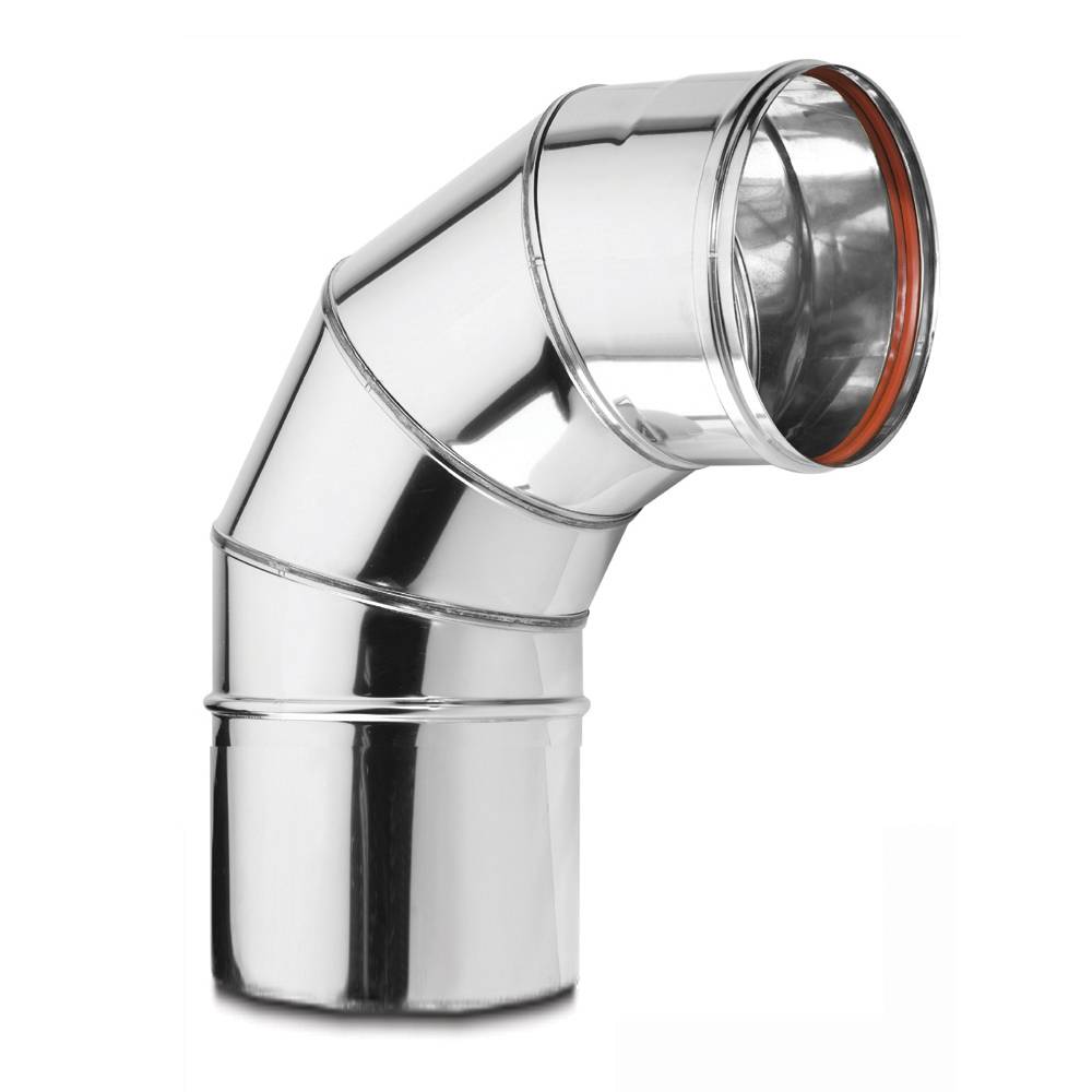 Savuputken kulma, jonka materiaali 0,6mm AISI 304 -teräs. CE -merkitty. Kulma 90 -astetta, halkaisija 120mm. Pidennetty malli.